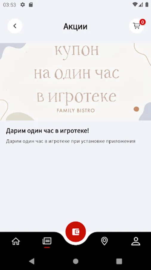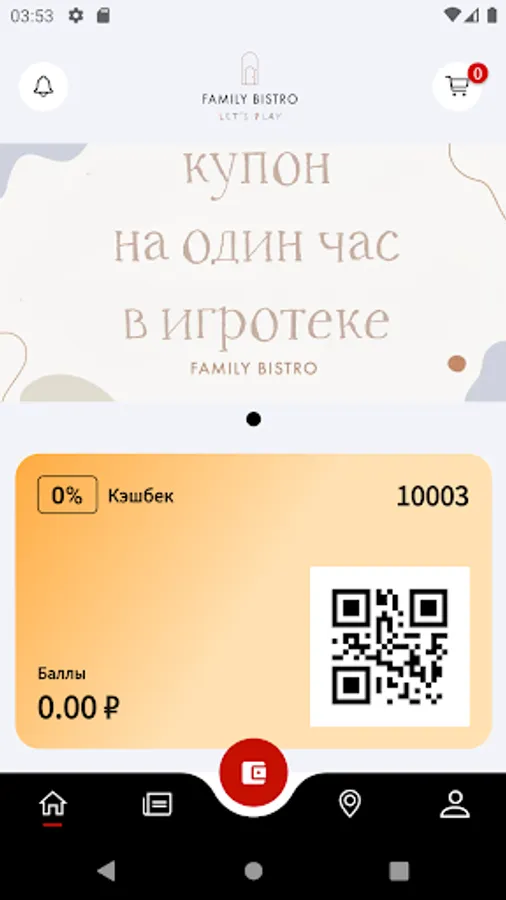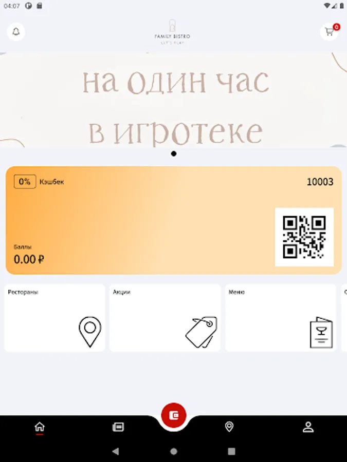Each participant receives an electronic bonus card, which becomes available immediately after registration in the application. We also enable each guest to receive personalized offers, news and promotions from Family Bistro, which can be accessed through the application.