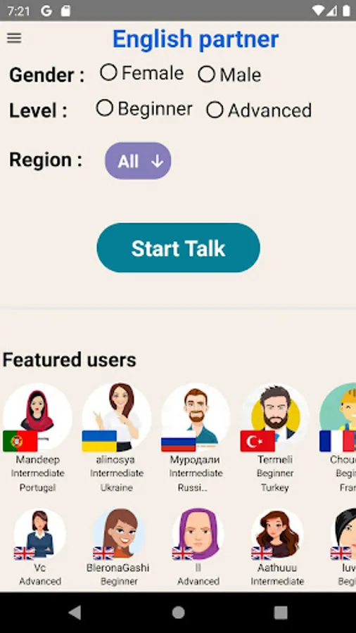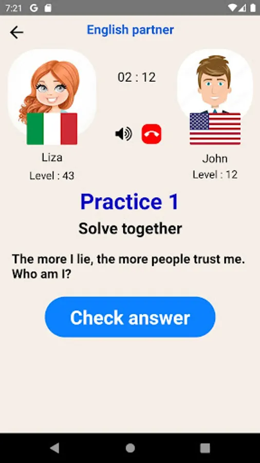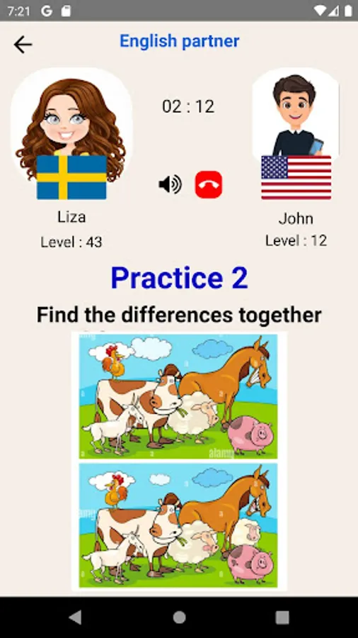 In this app you can find English speaking partner easily , then you can choose the activity and talk about them with your partner