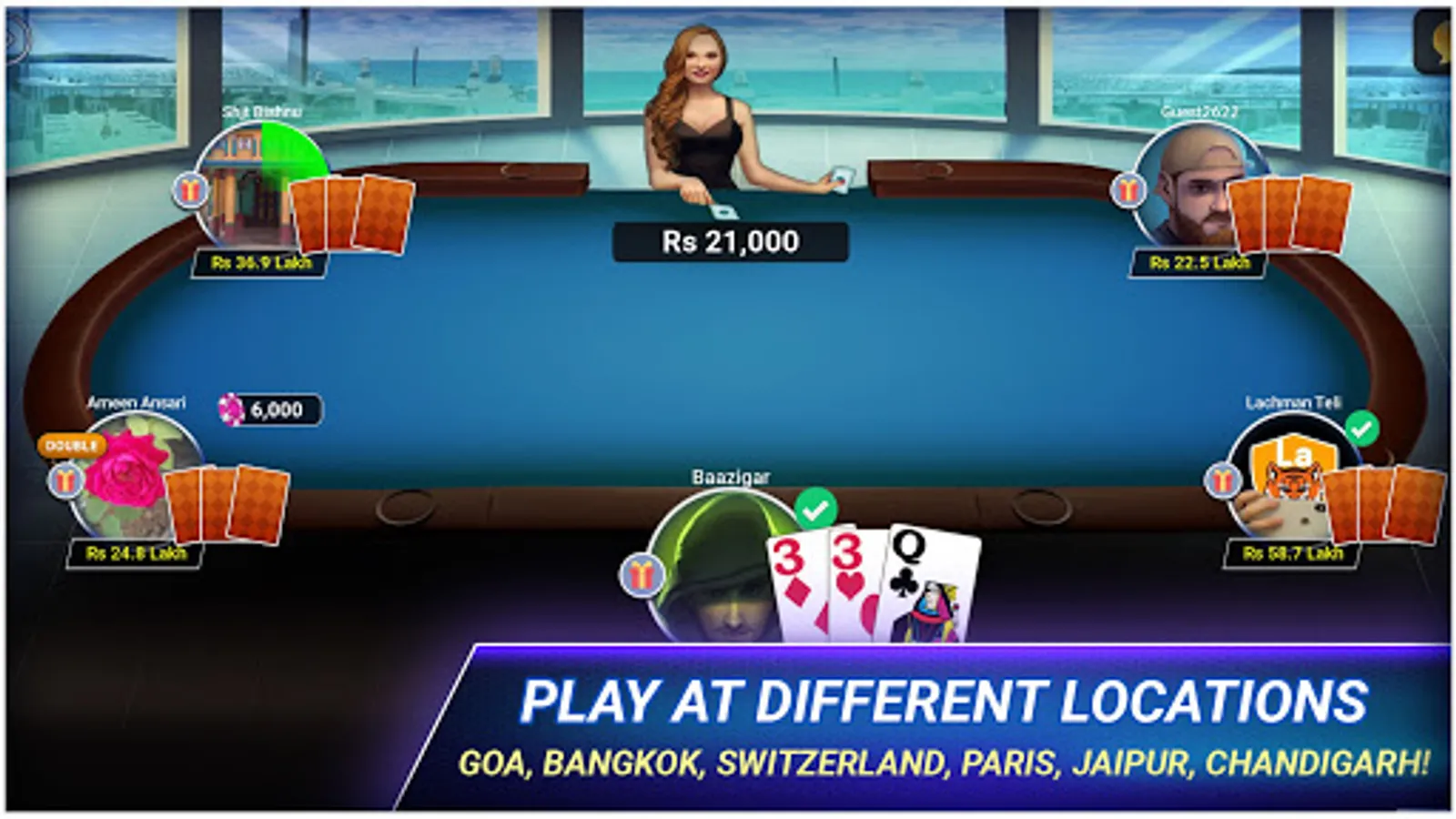 ● Game Modes: Classic Teen Patti Mode, Chatai, Joker / Paplu, Muflis, AK47, JKQK.