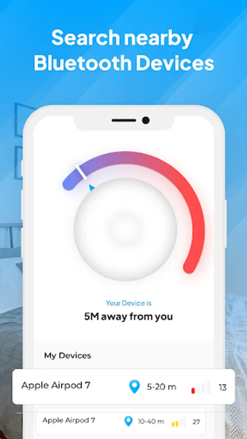 Find My Bluetooth device provide a simple distance meter which shows the distance between My Phone and My Bluetooth device after connectivity. Distance become shorter and shorter when you move phone to the connected Bluetooth devices and at last it easily find the Bluetooth device.