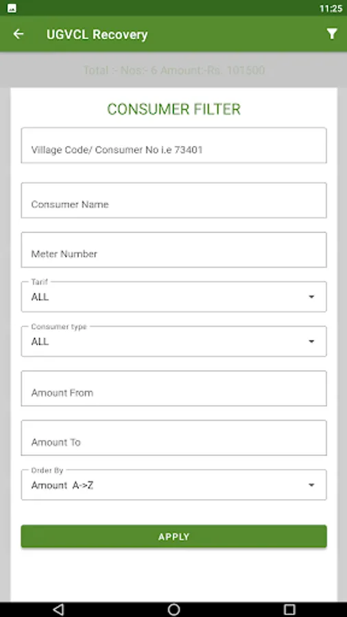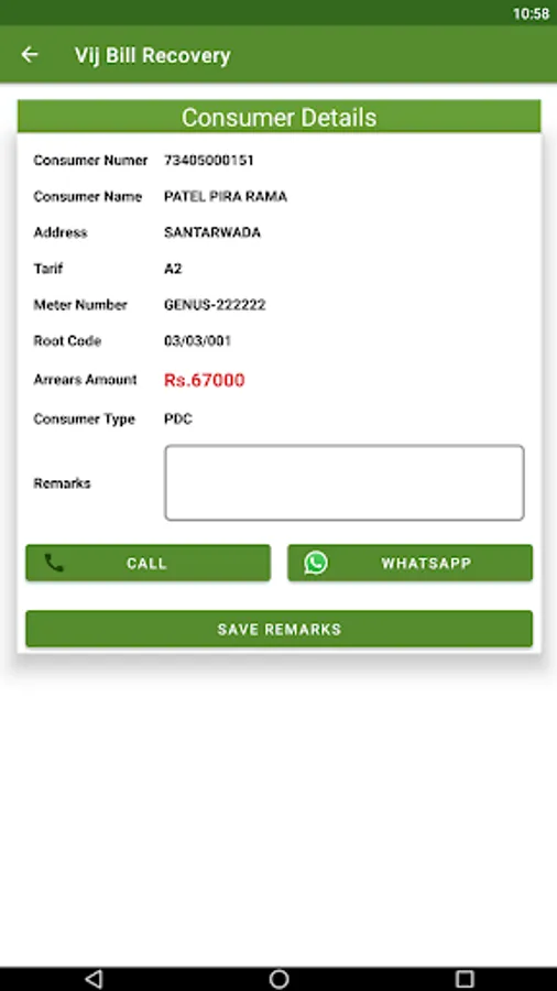 This app provide facility for search consumers by meter number village code, name , tarif , type as well as we can call or whats app instruction or give notice to consumer and we can easily recover outstanding at filed , it acts as powerful tools at field it is made specially for time saving for contacting consumer and recover their dues in time to increase company revenue