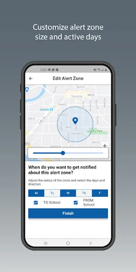 See the real-time location of your child’s school bus based on your customized Alert Zone. Receive push notification alerts when the bus is approaching an Alert Zones and when bus arrives or departs from the school.