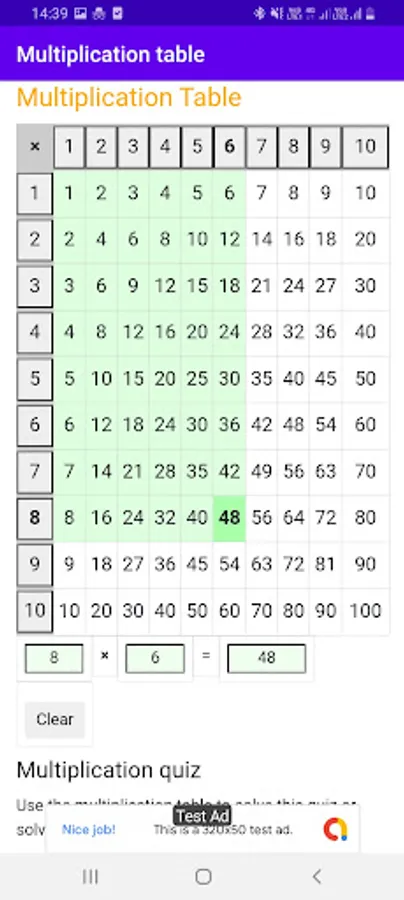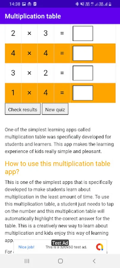 Last but not least, there is an AI-based multiplication test comes by default on this learning app. With the help of this test, students will have to answer 10 random questions on this app and once all the answers are given, they can check the correct answer on the check answer feature of this multiplication table learning app.