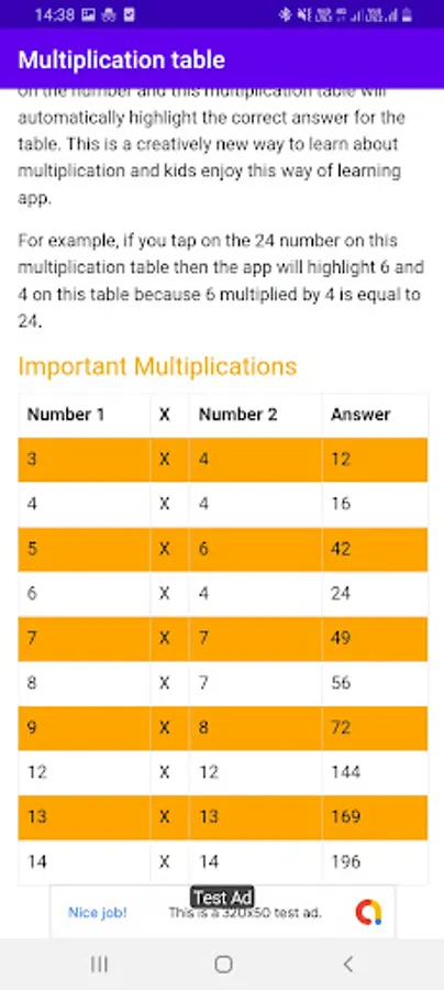 To use this multiplication table app, you just need to tap on the number and the app will highlight the table values in bold. For example, if you tap on 49 in the multiplication table then both 7s on the vertical and horizontal lines will be highlighted. This innovative design of this multiplication table is really useful for students and educators.