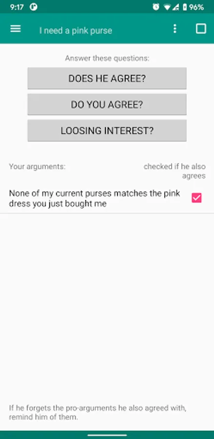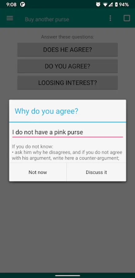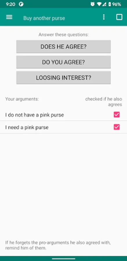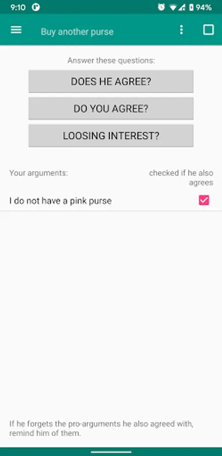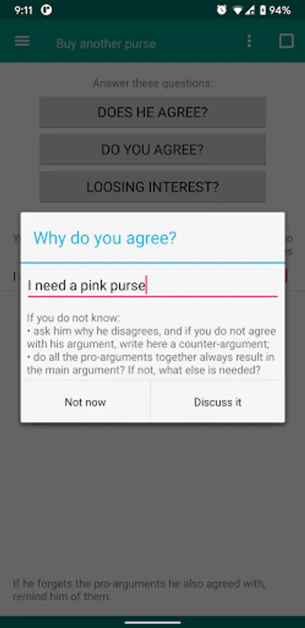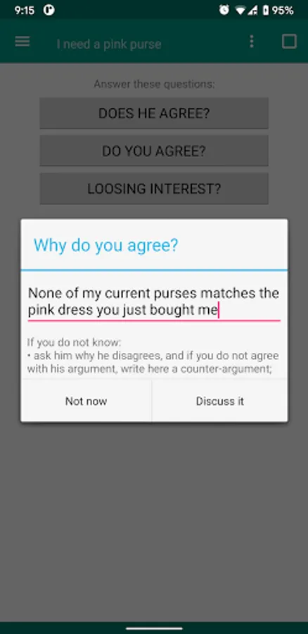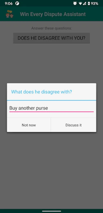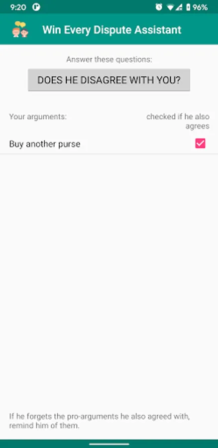 Use this argument assistant to help you win every dispute you might engage in, or simply to reach a compromise you both agree with.