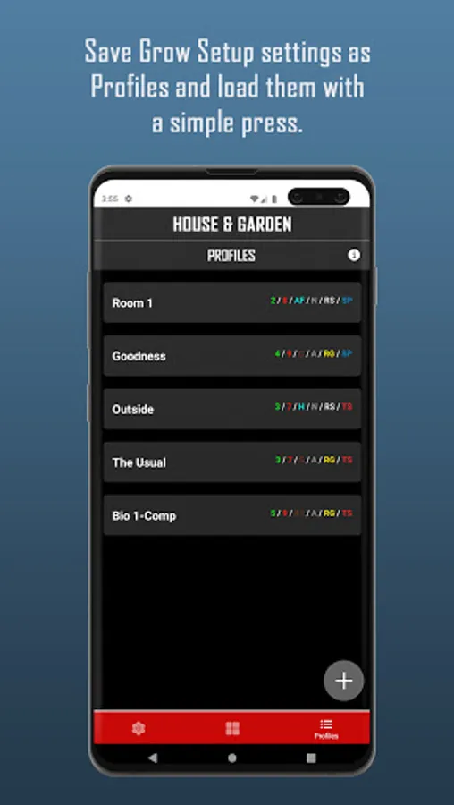 - Save different Grow Setups as Profiles and quickly switch between them on the fly.