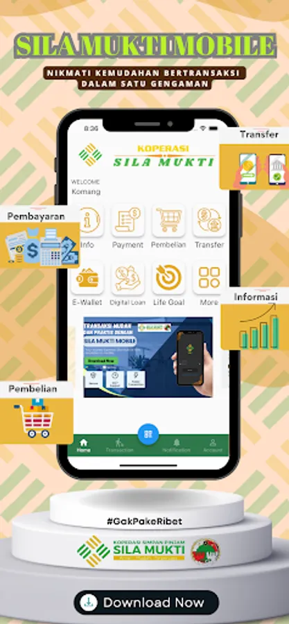Sila Mukti Mobile is a special mobile application aimed at members and customers of the Sila Mukti Cooperative which aims to make it easier for customers to fulfill their daily needs by making transactions directly via your smartphone quickly, easily and safely. Sila Mukti Mobile provides PPOB service features such as credit purchases, internet package purchases, BPJS payments, PLN payments, transfers between cooperative accounts, transfers to outside banks, transfers from outside banks and others.