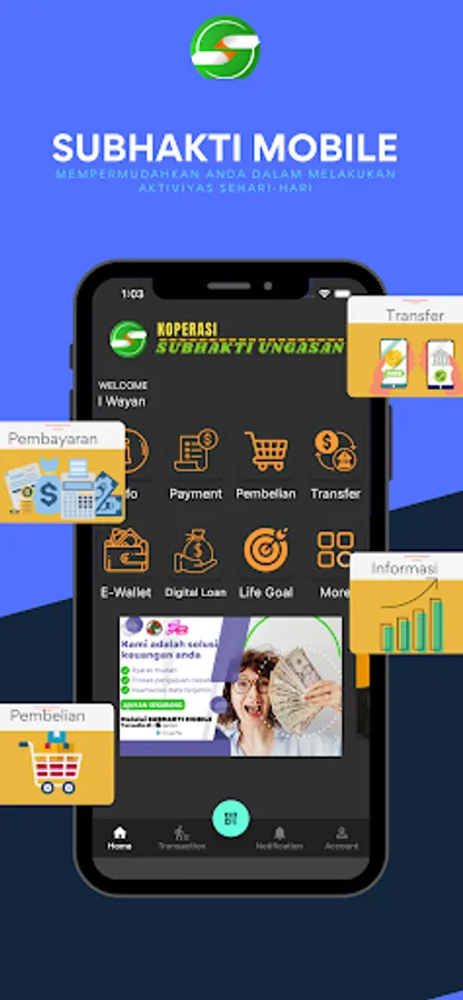 Subhakti Mobile is a mobile application specifically aimed at customers of the Ungasan Subhakti Cooperative which aims to make it easier for customers to fulfill their daily needs by making transactions directly through your smartphone quickly, easily, and safely. Subhakti Mobile provides PPOB purchase service features such as purchasing pulses, purchasing internet packages, bpjs payments, PLN payments, transfers between cooperative accounts, Transfers to Foreign Banks, Transfers from Foreign Banks and others.