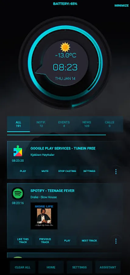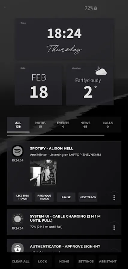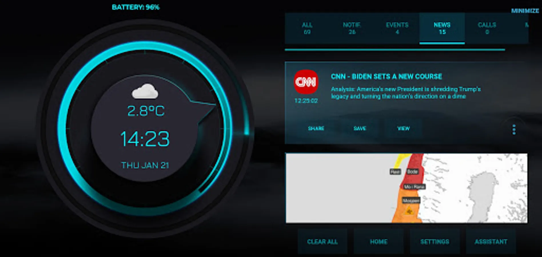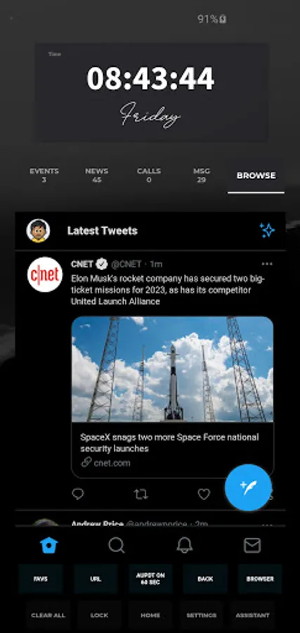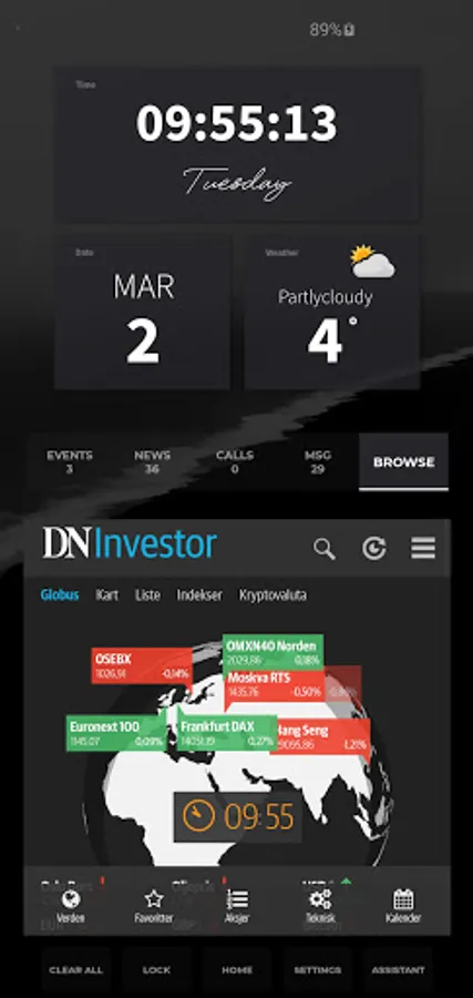 Swipe up, down on clock to have fullscreen clock or fullscreen notification/browser.