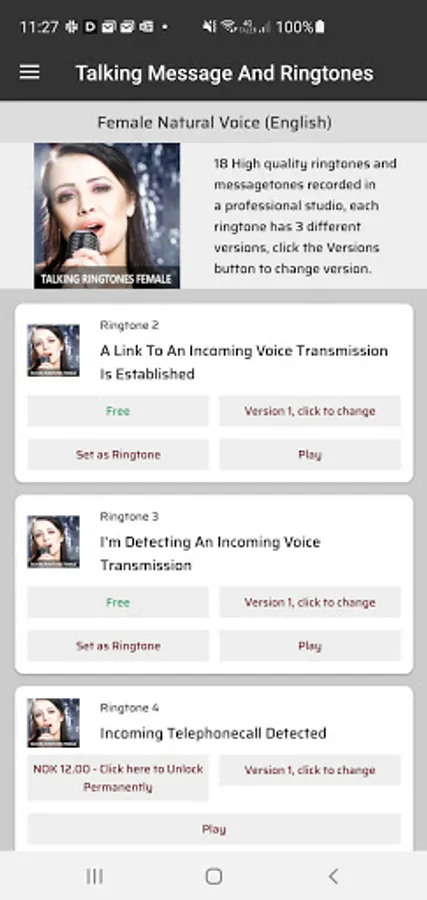 Each talking ringtone is available in 3 different tones of voice, so you'll be sure to find the perfect ringtone for you.