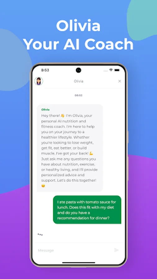 Ask Olivia any question through our interactive chat interface, and receive personalized, expert advice on nutrition, exercise, and healthy living. She's your ultimate guide, motivator, and support system.