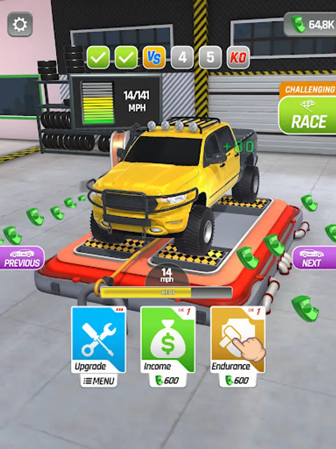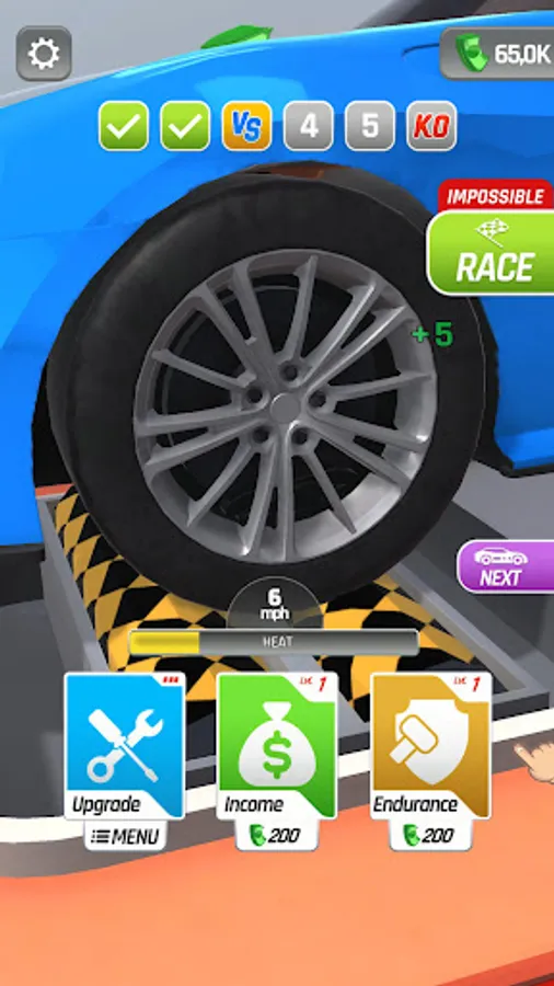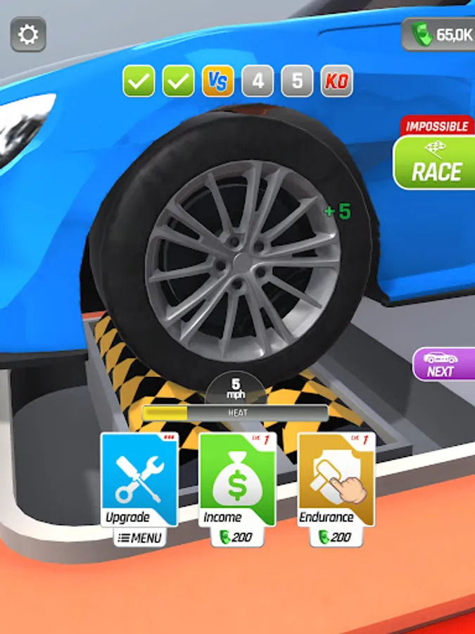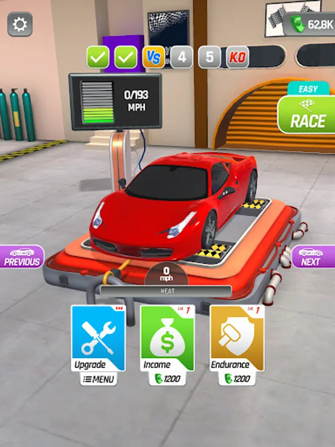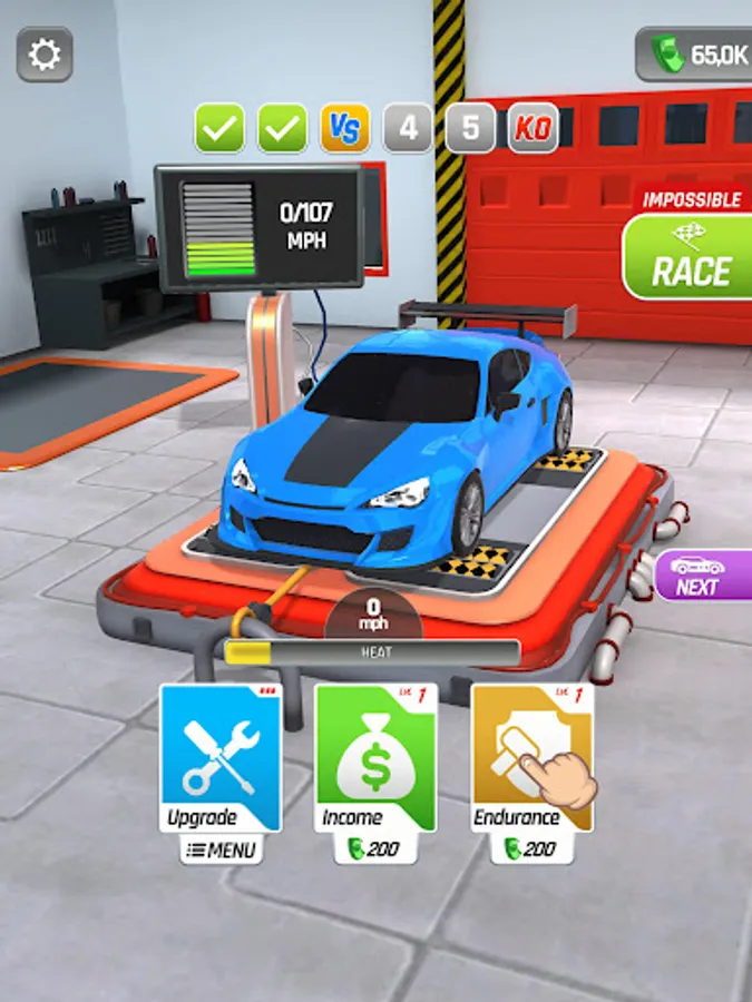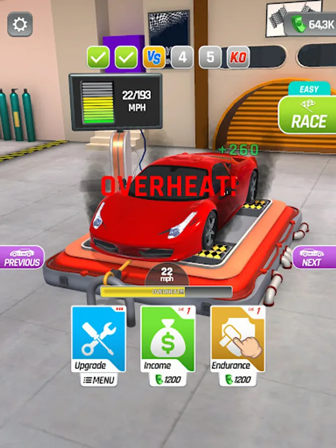 Tap and hold to rev up your engine and generate income, but be careful! Your engine might overheat if you push it too hard. Release the throttle to cool it down and keep it running smoothly. Use the income you generate to upgrade your car and unlock new vehicles.