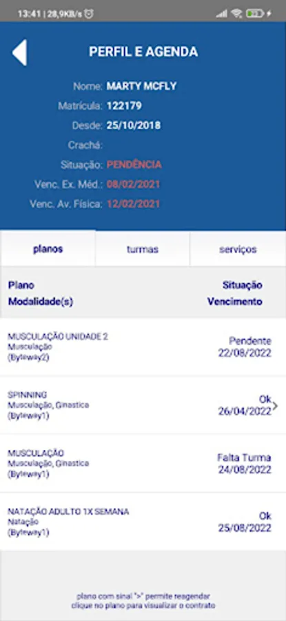 Application for scheduling classes, rescheduling and rescheduling.