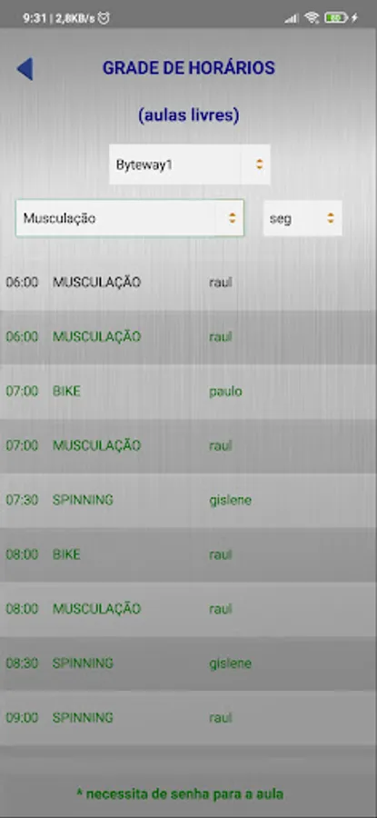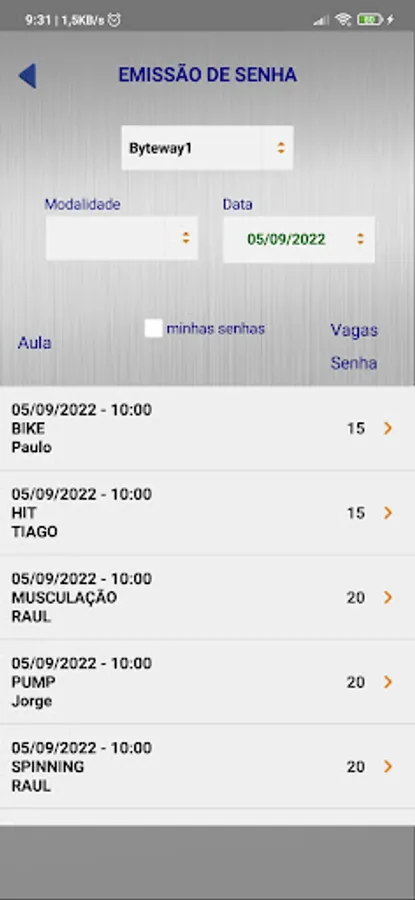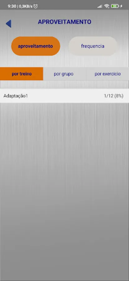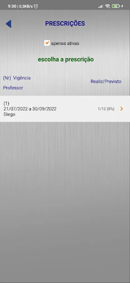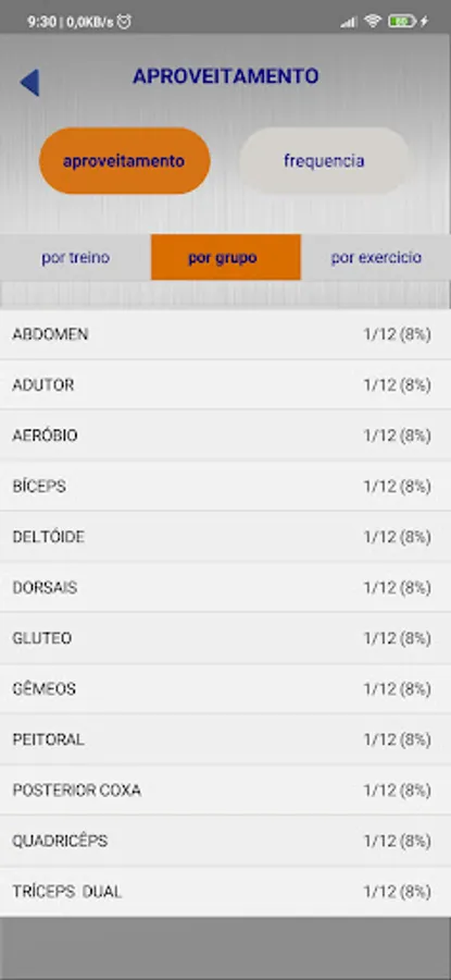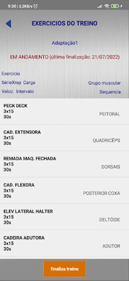 Visualization of the training sheet with an individual record of the exercise performed with detail of the frequency and last training performed.