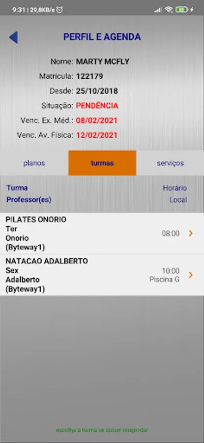 Visualization of the technical evaluation with activities carried out, attendance of classes and tests carried out.