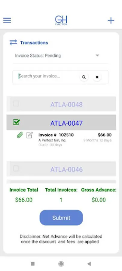 Automatically track invoices factored right from your phone.
