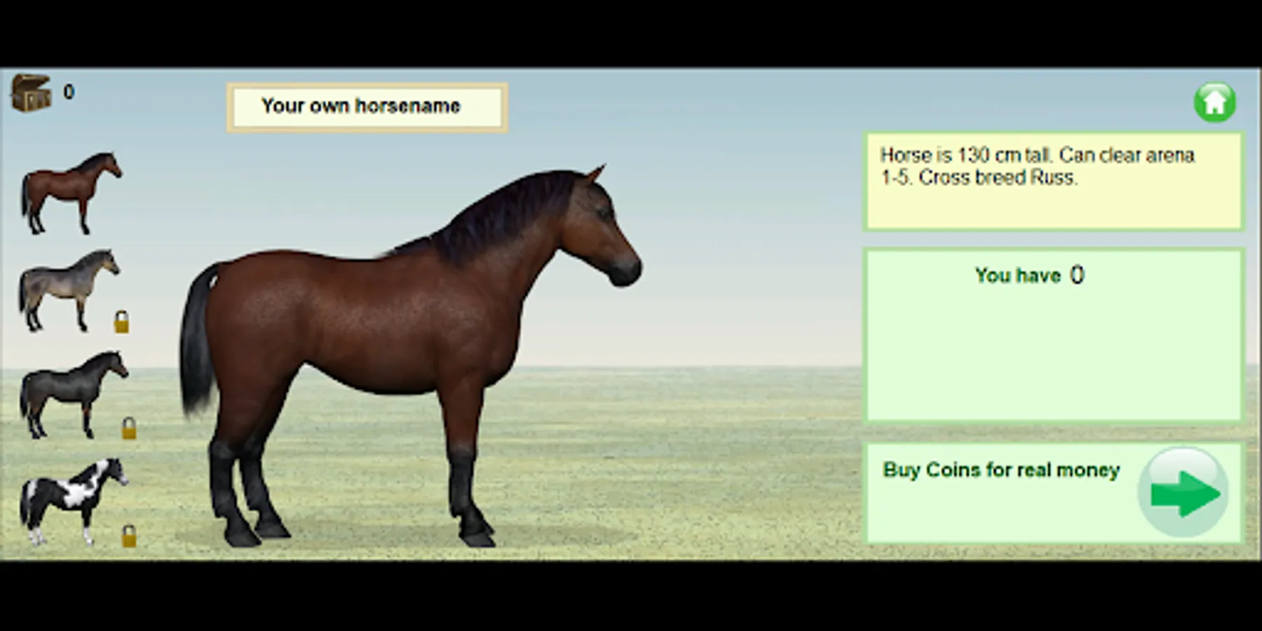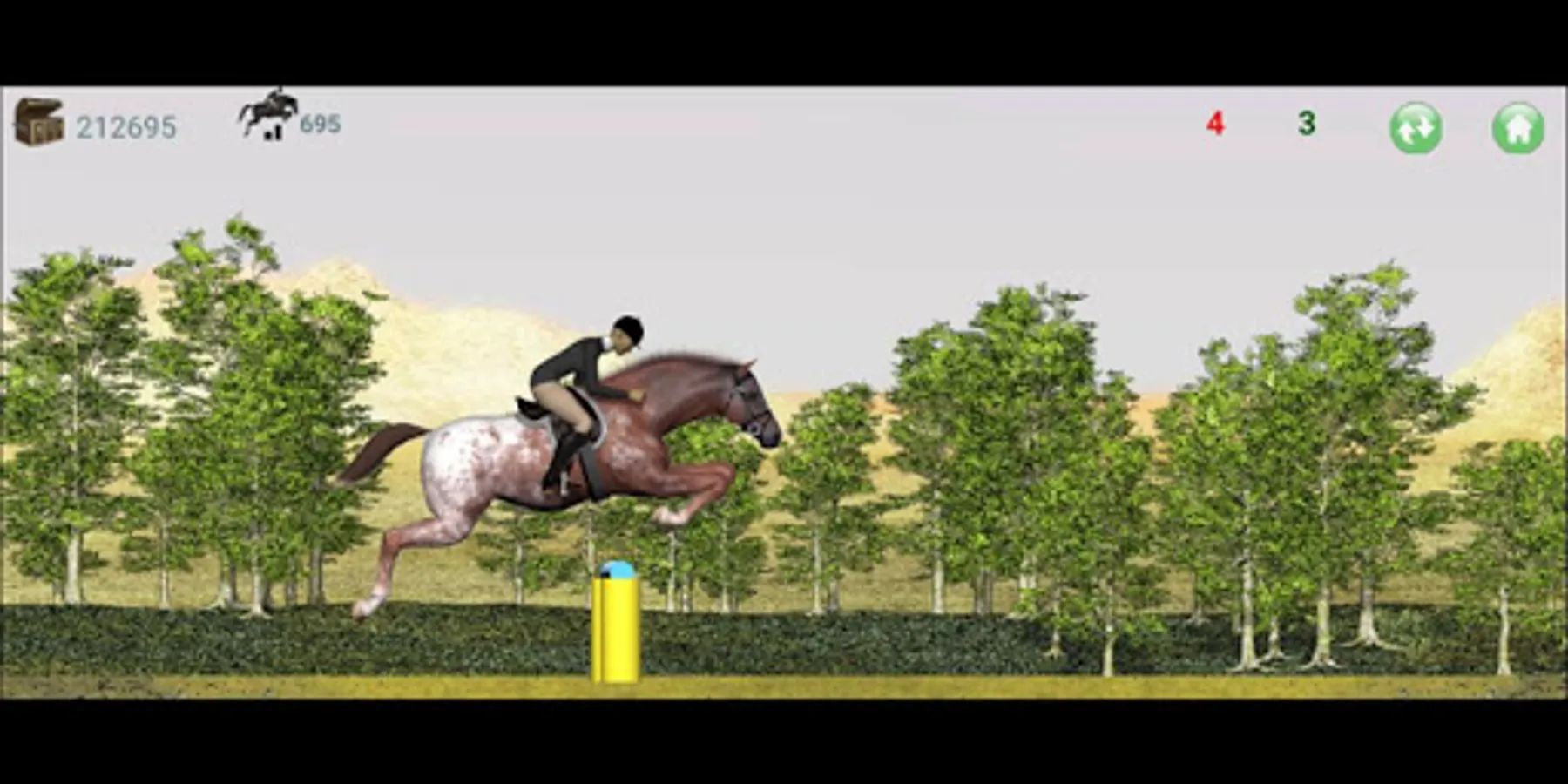 Get points for cleared jumps and levels. For earned points you can buy bigger and better horses and new colours for the horses. When all levels are cleared an endless level opens. Ride with your favourite horse and challenge yourself how many jumps you can clear.