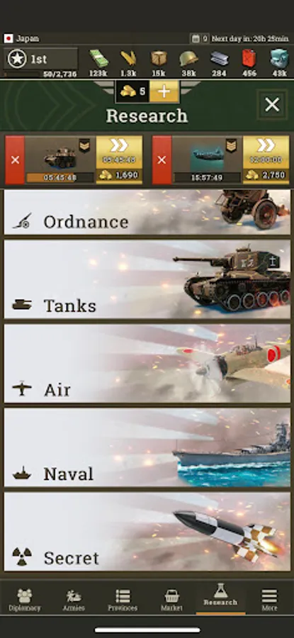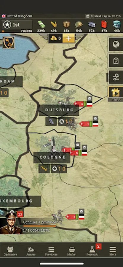 Play as the leader of one nation when a worldwide conflict seems inevitable. It all boils down to one question: What is your strategy? Find your allies, build up your economy and conquer enemy territory. Research new technologies and secret weapons. Be the first to develop the ultimate bomb and even rockets to become the one true superpower! It is up to you to end the war and bring balance to the world!