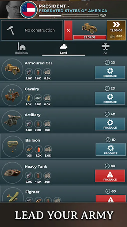 Choose your favorite nation during WWI and assume the highest office in your desired empire. Balance the production of materials, troops and weaponry with the rare resources your land has to offer. Form alliances with your competitors, do important trade deals or fight yourself through the 1st World War scenario you are challenged with. This rough period demands a valiant leader like you. Ensure your peoples survival, train them to join their brothers in arms on the battlefields on foot, as cavalry or even place them into the first experimental tank. Develop your country and slowly conquer the world.