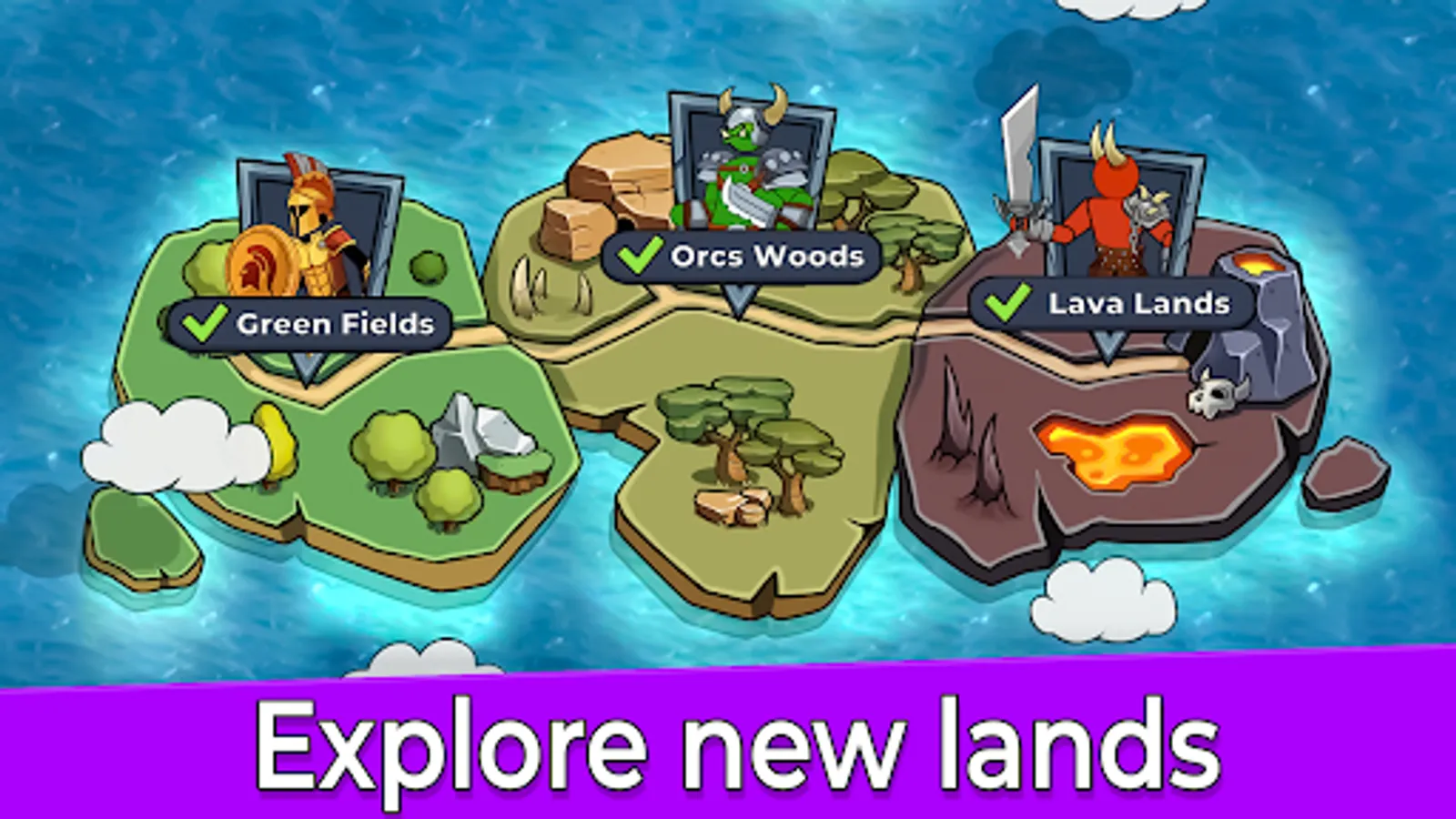 In this stickman fighting game you also get to explore new lands and face different enemies. Meeting a new enemy can be quite a challenge! Explore your idle stickman and casual game skills and find your opponents’ weaknesses with this fun and exciting casual game. Fight in Green Fields, challenge your enemies in Orcs Woods, practice your casual game defense skills in Lava Lands and much more!