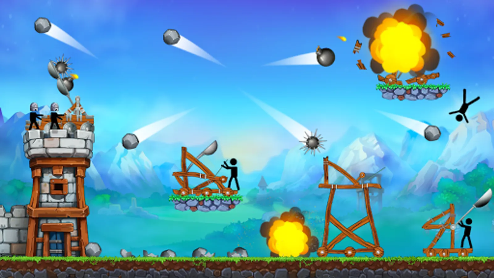 Become the legendary master of the castle siege and destroy the evil enemy stickman with their catapult constructions. Stickman will fight artillery, siege towers and huge combat mechanisms in 180 levels of this game) Defend your castle from archers and catapults of different constructions. They throw stones and arrows!. They want to destroy your castle! Upgrade your weapon, catapult, crossbow, arrows and destroy enemy stickmans, archers in this game. Upgrade and grow your castle, you can upgrade the towers by adding slots with archers or cannons that will hit more damage to the enemy. Help the stickman defend castle from the enemy stickman and crush enemy guns. Simple intuitive controls. Click on the screen and pull to charge the catapult and select the pull force. Release to launch a shell at an enemy stickman and destroy it! Multiplayer is available! Now you can play online with other players and win PvP battles! Have a nice game!