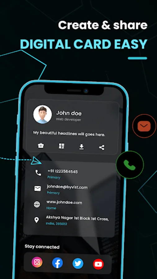 Social & Web Links 🔗: Easily incorporate your social media profiles and website links into your digital card for quick access.
