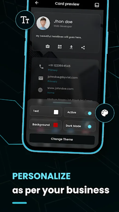Custom Backgrounds 🌟: Create a truly personalized digital business card by uploading custom backgrounds.