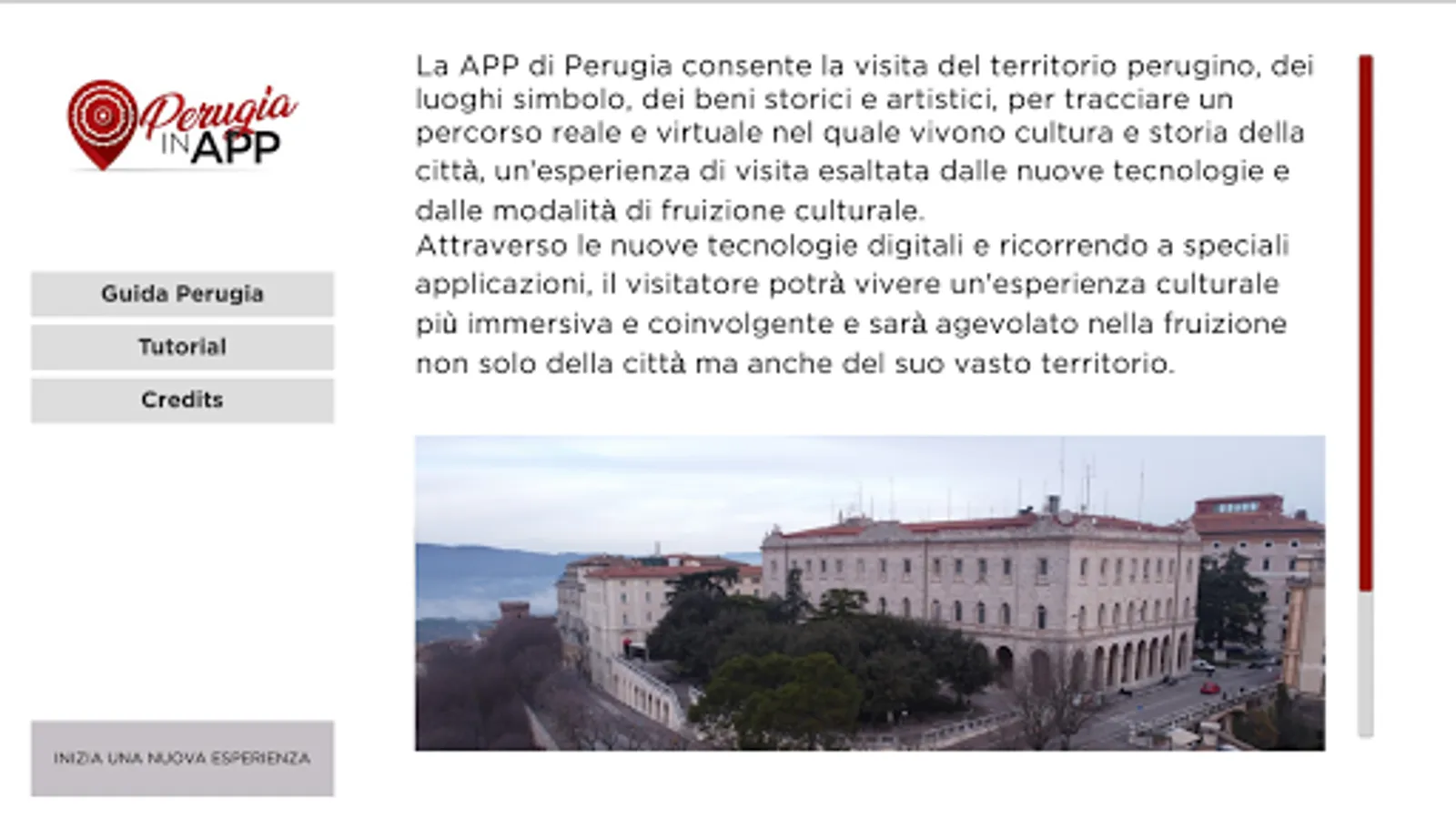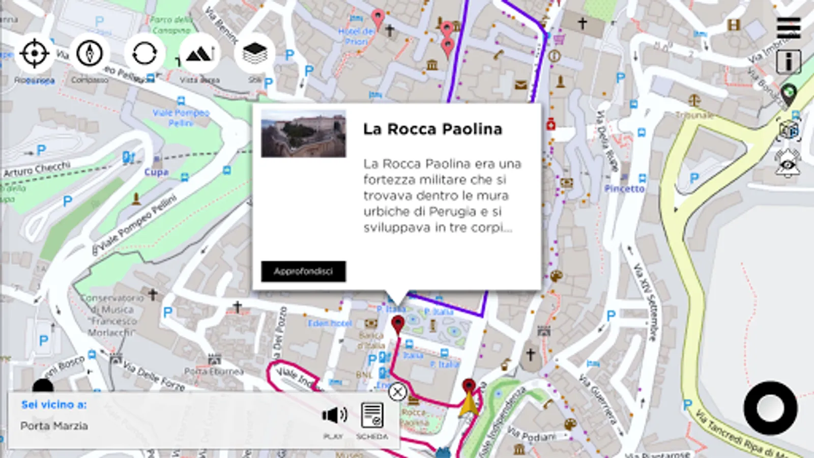 Perugia InApp is an application that uses the functions of GPS, Augmented Reality and Bluetooth to give tourists a unique and engaging experience of visiting the cultural and natural heritage of the Perugia area.