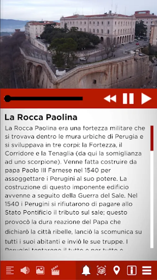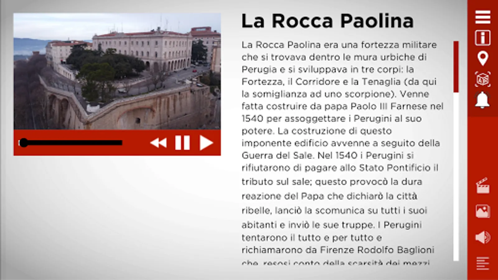 Perugia InApp allows you to have an interactive guide of the territory, of the paths, of cycle paths and of the main monuments in the Perugia area. Moreover, thanks to the AR systems and the ibeacon sensor networks, it allows the visit of over 200 points of interest and 11 tourist itineraries.