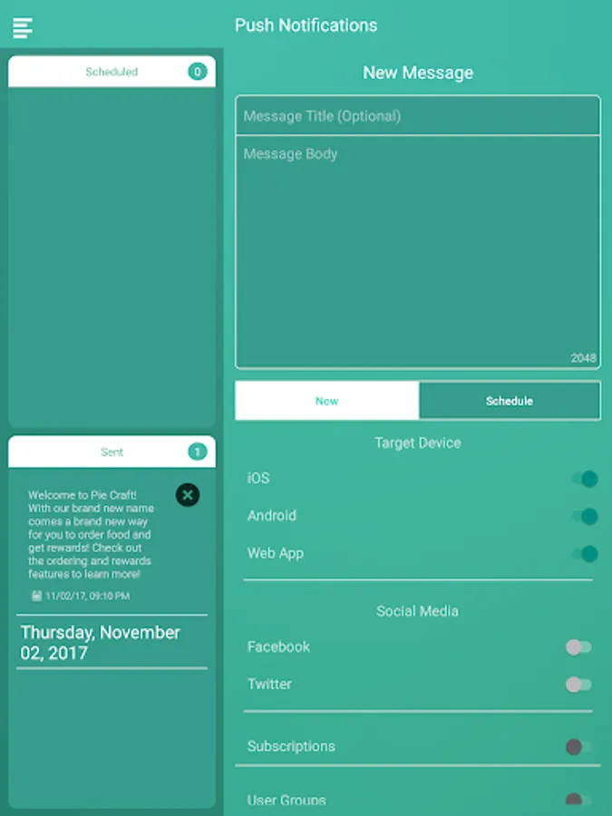 Send targeted push notifications to your users, see orders, reservations, and loyalty interactions made.