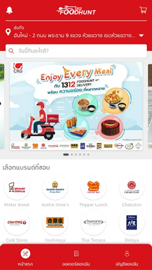 Our “1312 FOODHUNT DELIVERY” App is a subsidiary of CRG from which we can introduce you to many famous brands, for example; Mister Donut, Auntie Anne’s, Pepper Lunch, Chabuton, Cold Stone Creamery, Thai Terrace, Yoshinoya, Ootoya, Tenya, Katsuya, Aroidee, Kowlune, Salad Factory, Brown Café and many others.