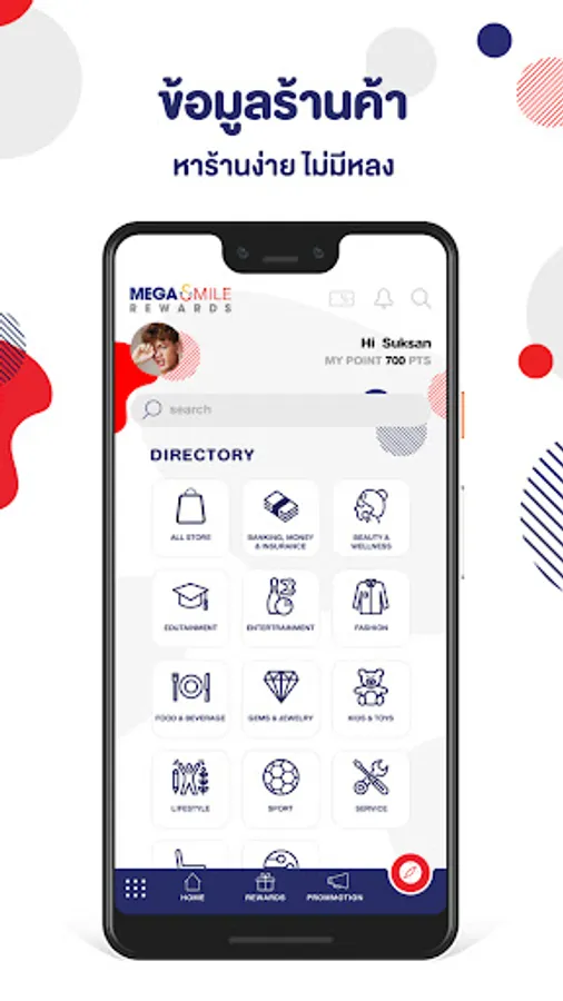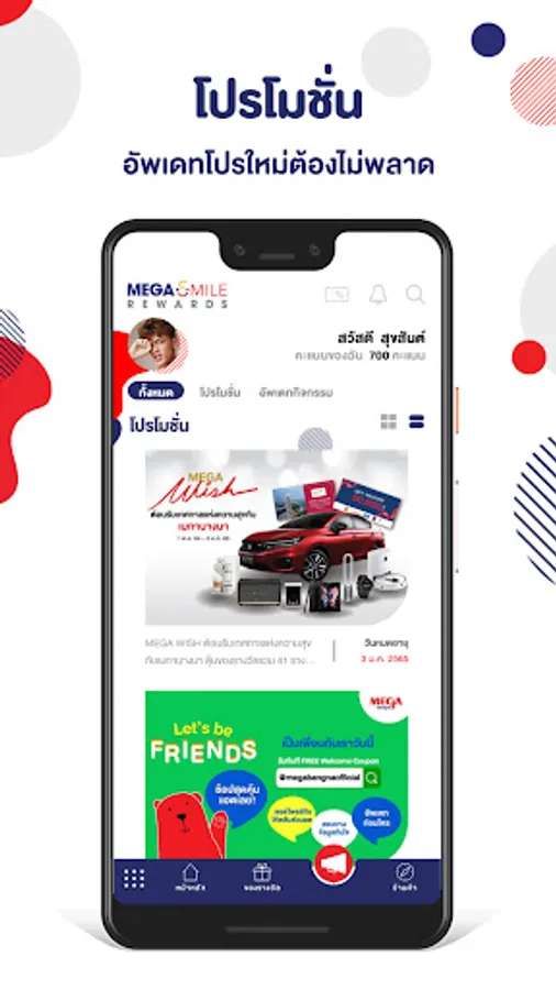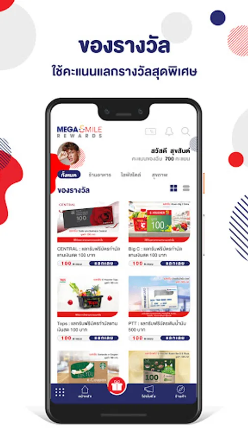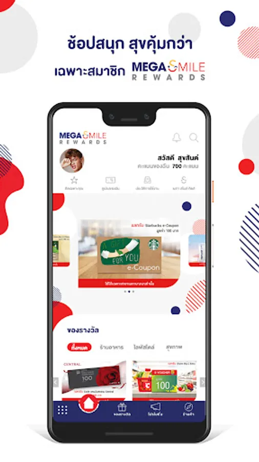 - Every purchase 500 THB , you will get 1 Mega Smile Rewards point.