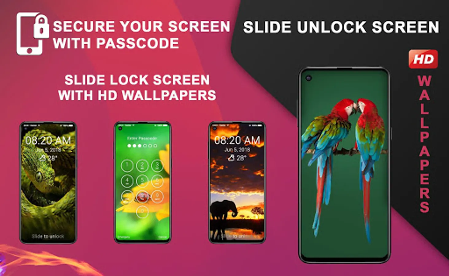 Animals HD Wallpapers Lock Screen will help you to lock your screen by passcode lock and make your screen looks like phone lock screen lock screen. Cool wallpapers and in the same time you save your privacy with this lock screen app, lock screen allow you to set to passcode to protect your privacy, or you can just use slide to unlock without pin code.