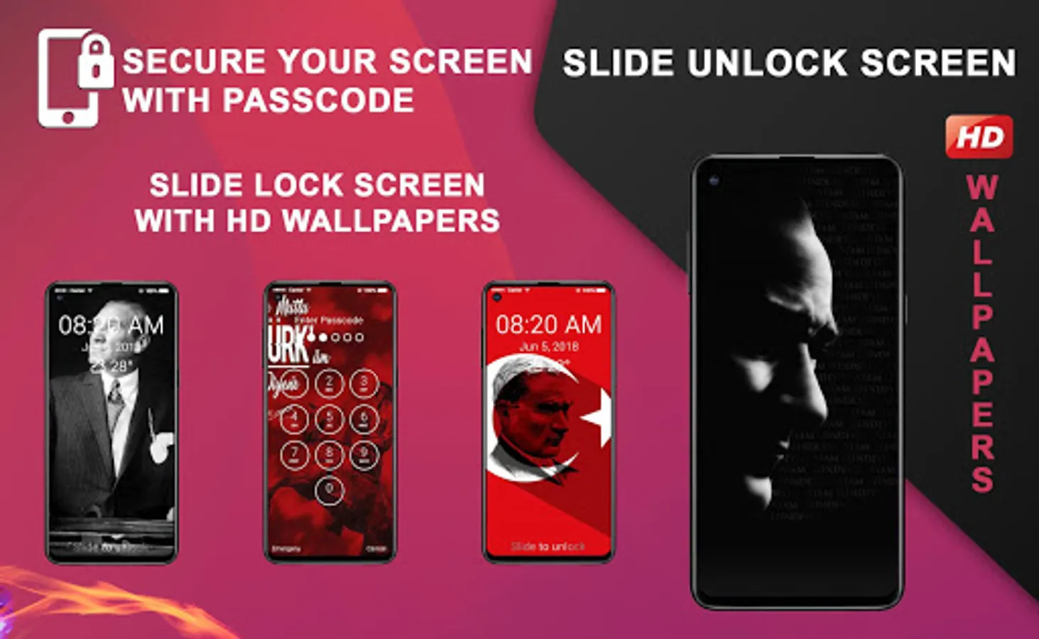 Atatürk 2019 Wallpapers Slide Unlock Screen Features: