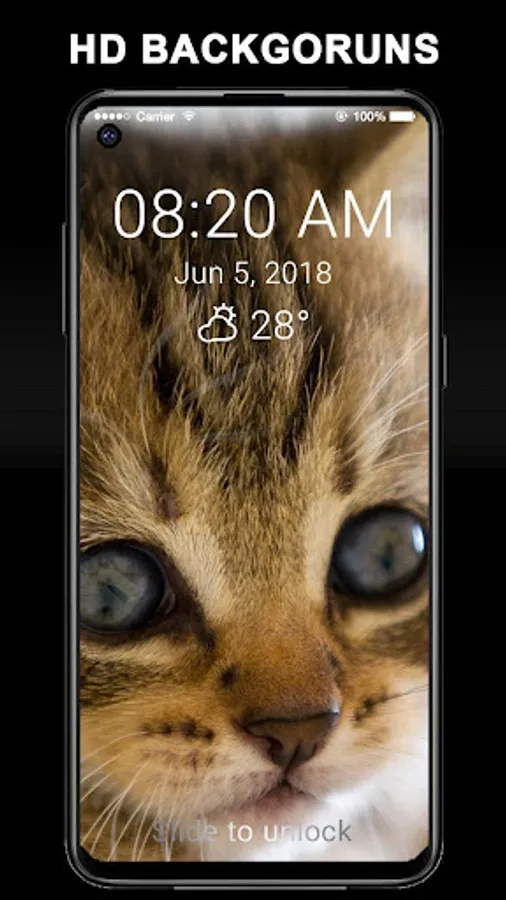 Kitten 2019 Wallpapers Slide Unlock Screen will help you to lock your screen by passcode lock and make your screen looks like phone lock screen lock screen . Cool wallpapers and in the same time you save your privacy with this lock screen app, lock screen allow you to set a passcode to protect your privacy , or you can just using slide to unlock without pin code.