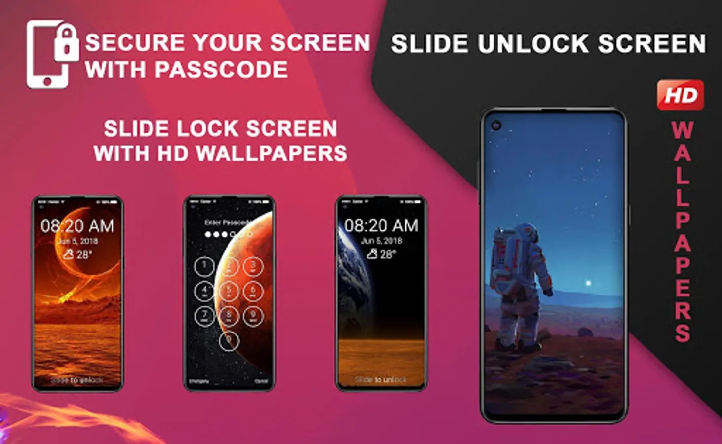 Mars Wallpapers Slide Unlock Screen is the best keypad lock screen like phone lock screen to set password/passcode/pin for your lock screen.