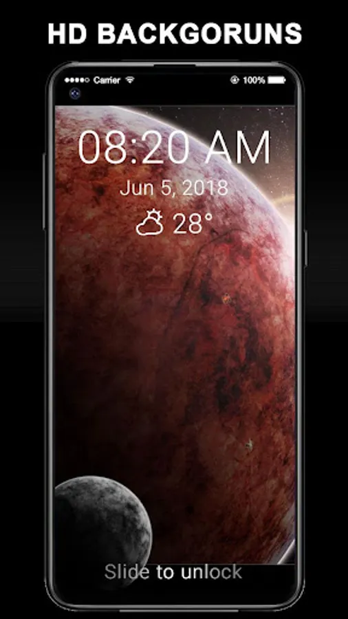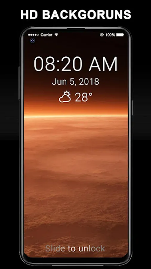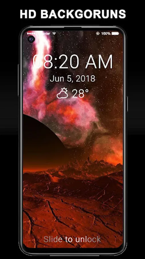 Mars Wallpapers Slide Unlock Screen will help you to lock your screen by passcode lock and make your screen looks like phone lock screen lock screen . Cool wallpapers and in the same time you save your privacy with this lock screen app, lock screen allow you to set a passcode to protect your privacy , or you can just using slide to unlock without pin code.