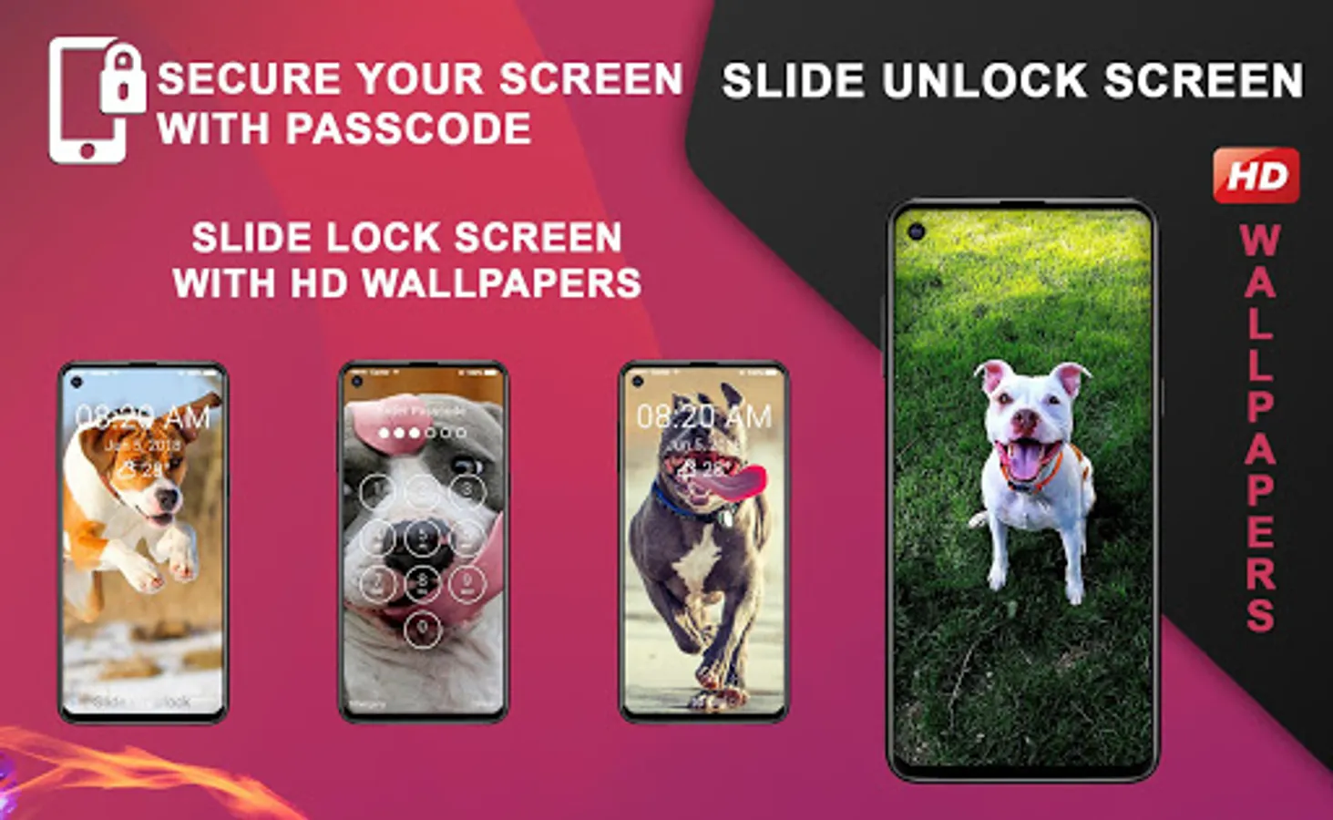 Pitbull Dog 2019 Slide Unlock Screen is the best keypad lock screen like phone lock screen to set password/passcode/pin for your lock screen.