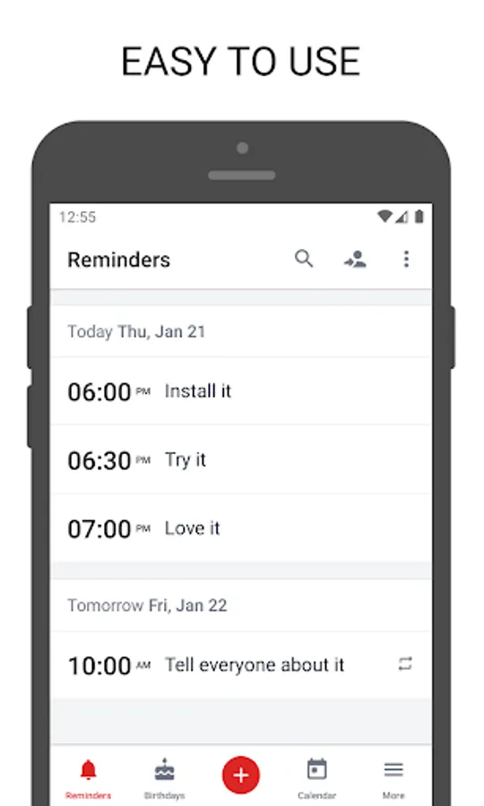★ Easy to use and straightforward reminder & to-do list app. Made for those who want to set up tasks super quickly. You do not even have to take your phone out of your pocket, you can just set reminder right from your android wear smart watch. Also you can use it as notes app.