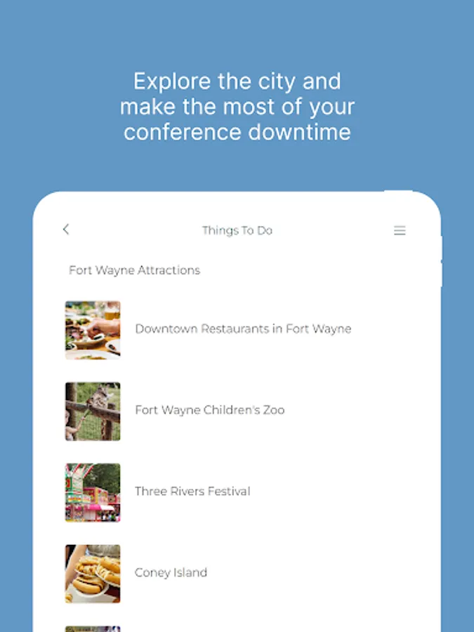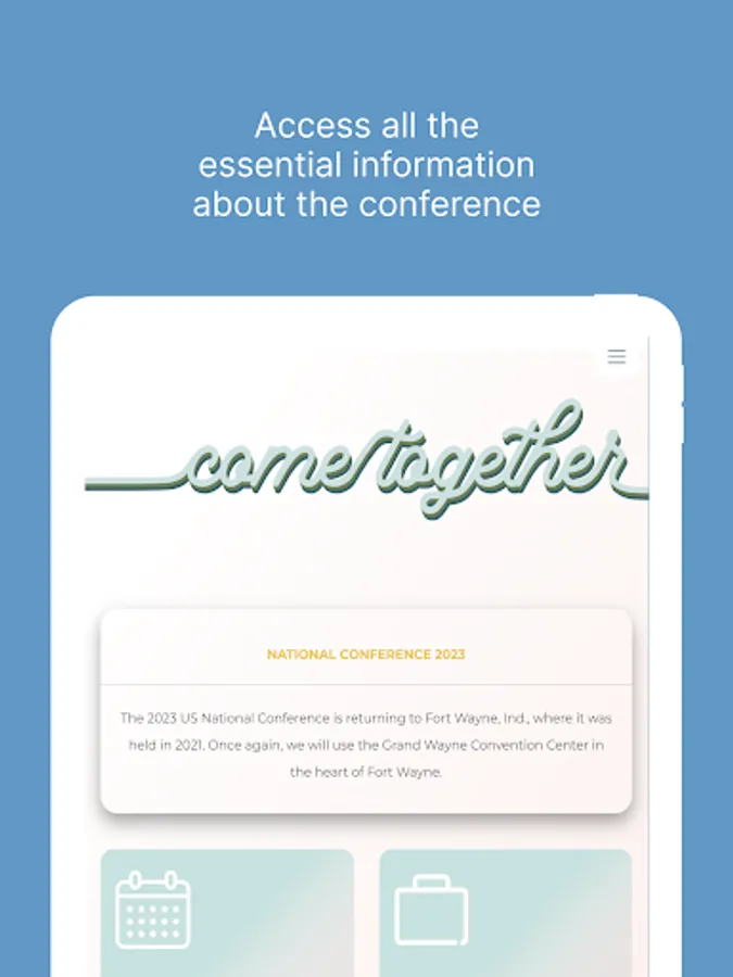 This is the official app for the United Brethren 2023 National Conference. Stay connected to the conference through direct access to the schedule, business content, and real-time updates. The 2023 US National Conference is returning to Fort Wayne, Ind., where it was held in 2021. Once again, we will use the Grand Wayne Convention Center in the heart of Fort Wayne.