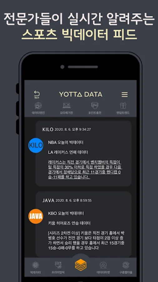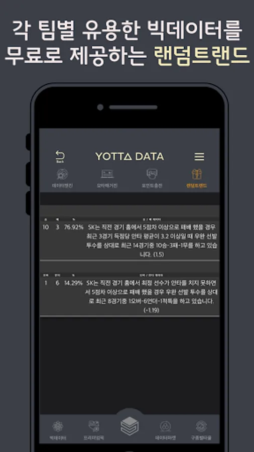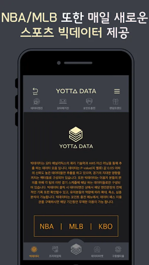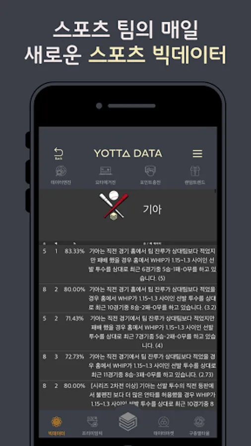 Yota Data has data on not only Korean professional baseball (KBO), Korean professional basketball (KBL), but also major league (MLB), American professional basketball (NBA), and British professional football (EPL).