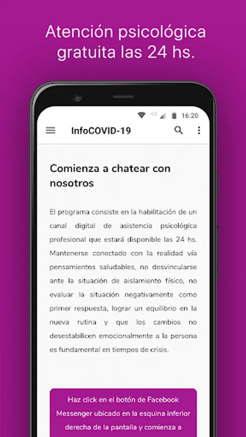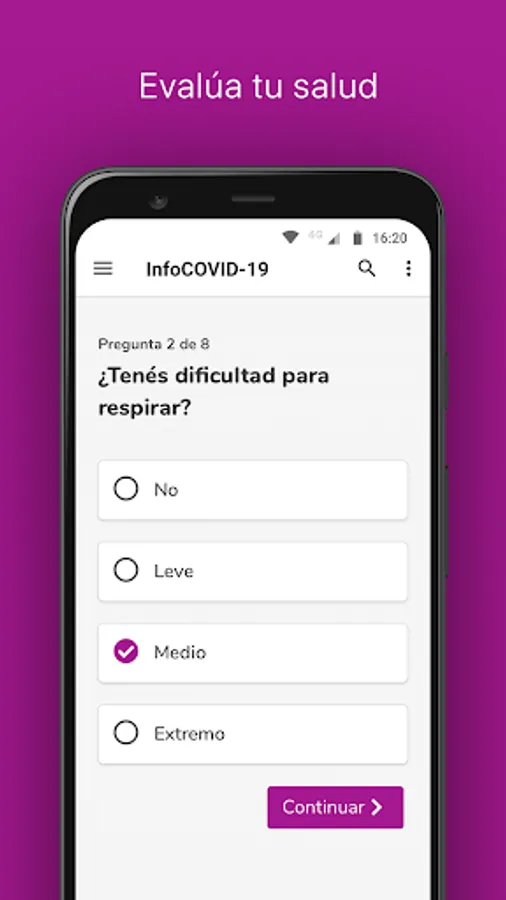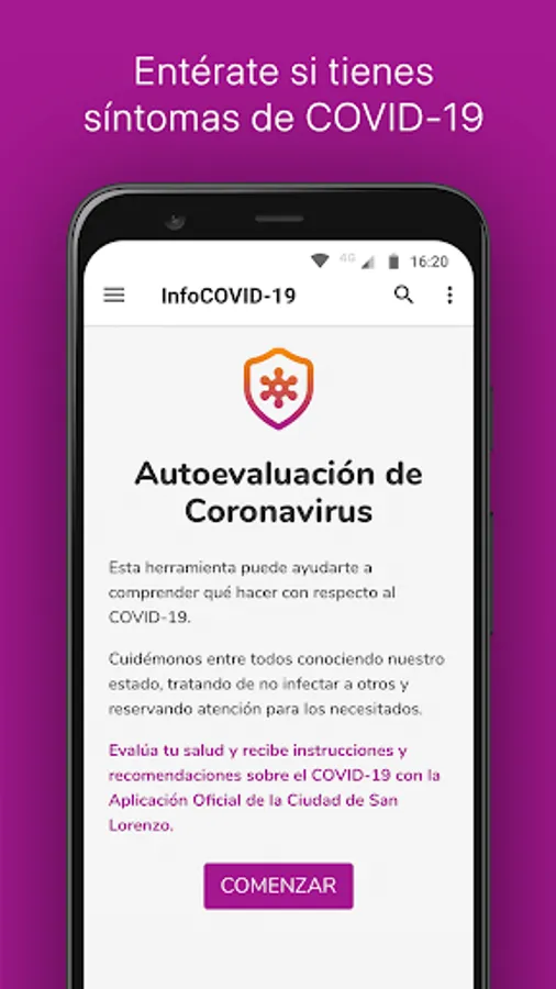 Evaluate your health and receive instructions and recommendations about COVID-19 with the Official App of the City of San Lorenzo.
