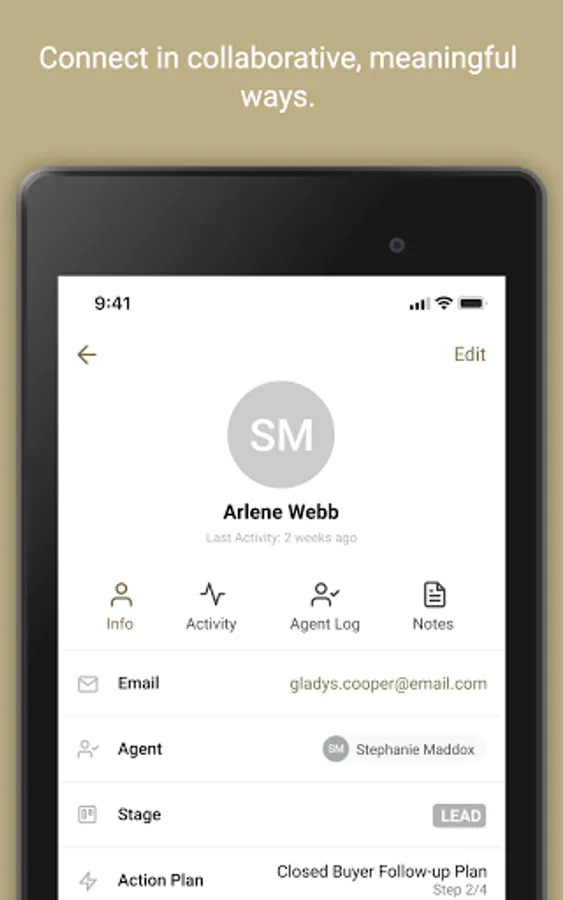 The Century21® CRM is a powerful tool, allowing you to interact with your clients and leads direct from your mobile device. Easily gain insights into your contacts' preferences, including what homes and neighborhoods they are searching and saving. Take these valuable insights and assign your contacts to appropriate action plans, suggest collections, exchange comments on viewed homes, and much more. With the C21® CRM, you will stay in touch and in the know.