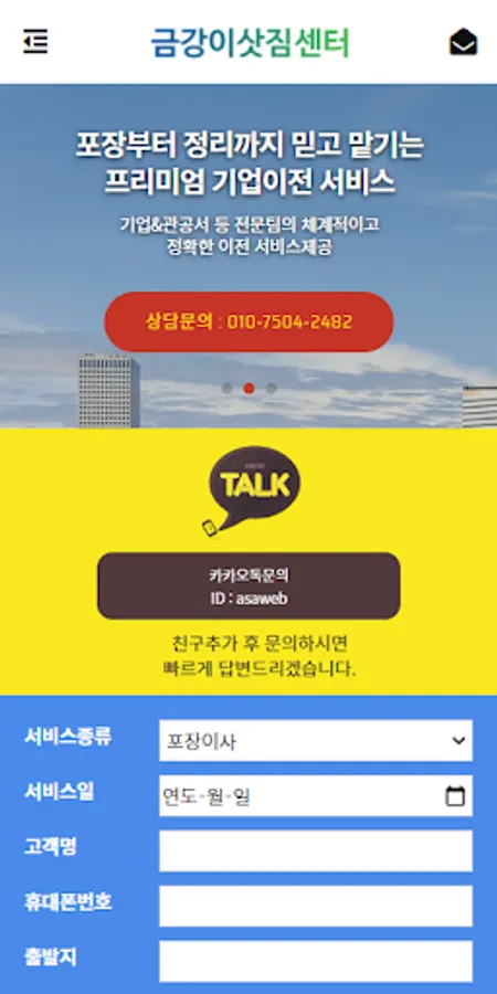 Geumgang Moving Center, which has been providing packing moving services to customers with a ten-year tradition of only moving luggage, is a company that specializes in moving directly managed by Seoul, Gyeonggi, and Incheon.