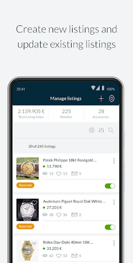 With the Chrono24 Dealer app, you can take the world's largest watch marketplace with you wherever you go. Reach millions of luxury watch fans with your listings and sell across international borders. Don't waste your time and money on marketing, translations, and customer support – we've got that covered.