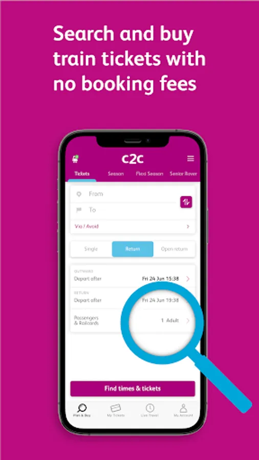 The c2c Train Travel app is also your one stop shop for buying all UK train tickets, without having to pay any booking fees.