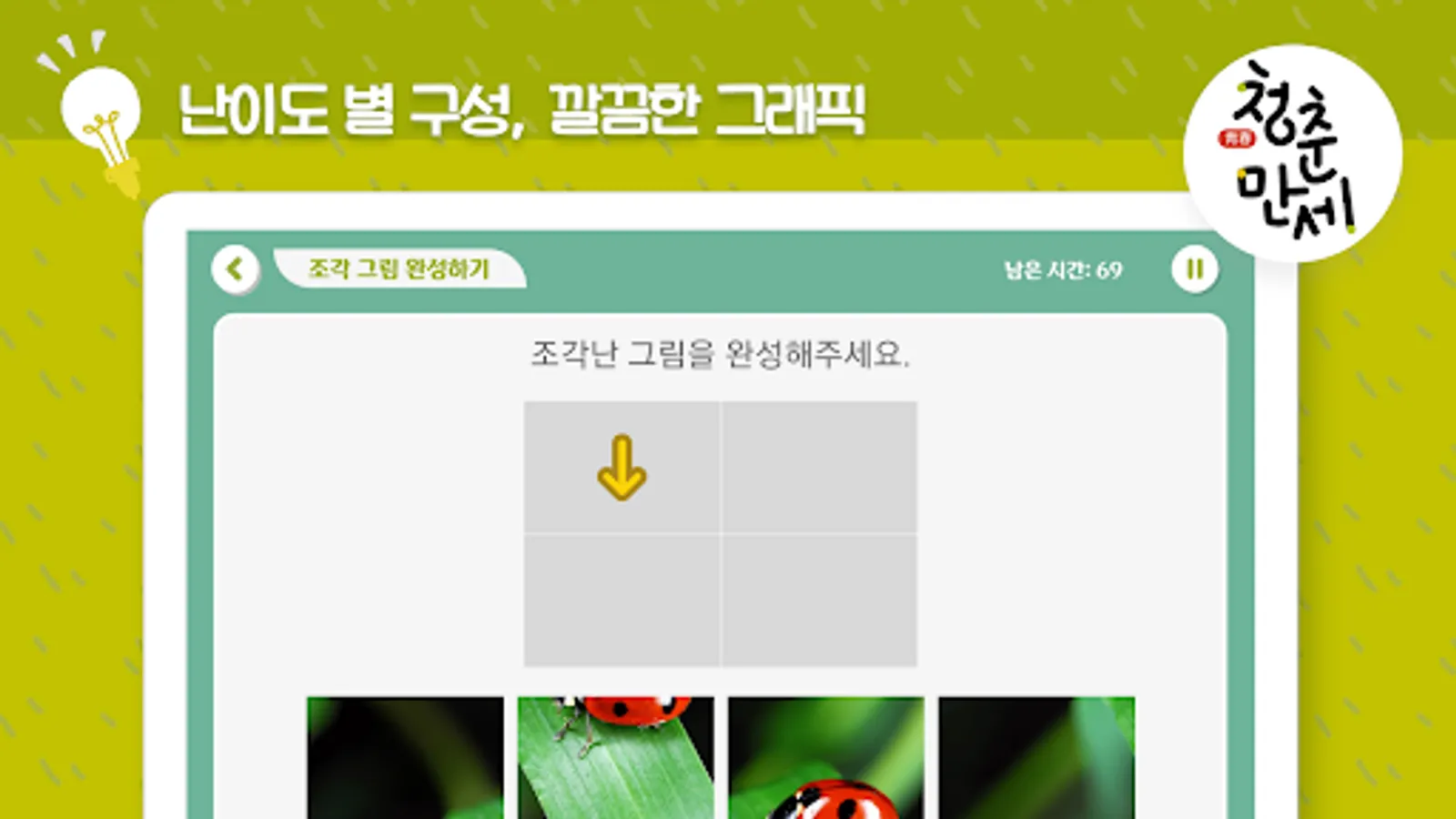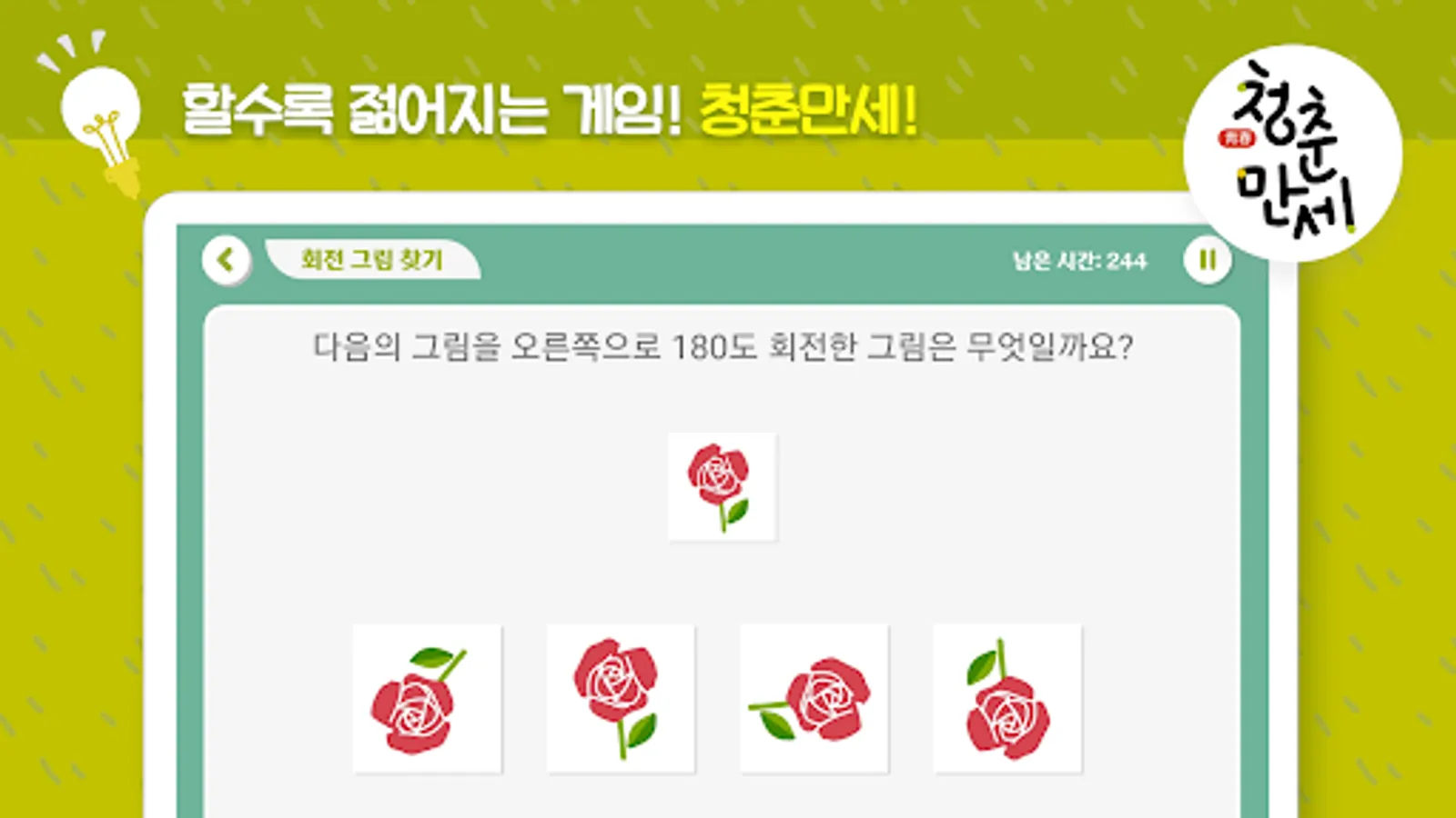 It is a cognitive training content that allows cognitive training to be conducted without objection through colorfully designed images, and training using hearing is also possible.