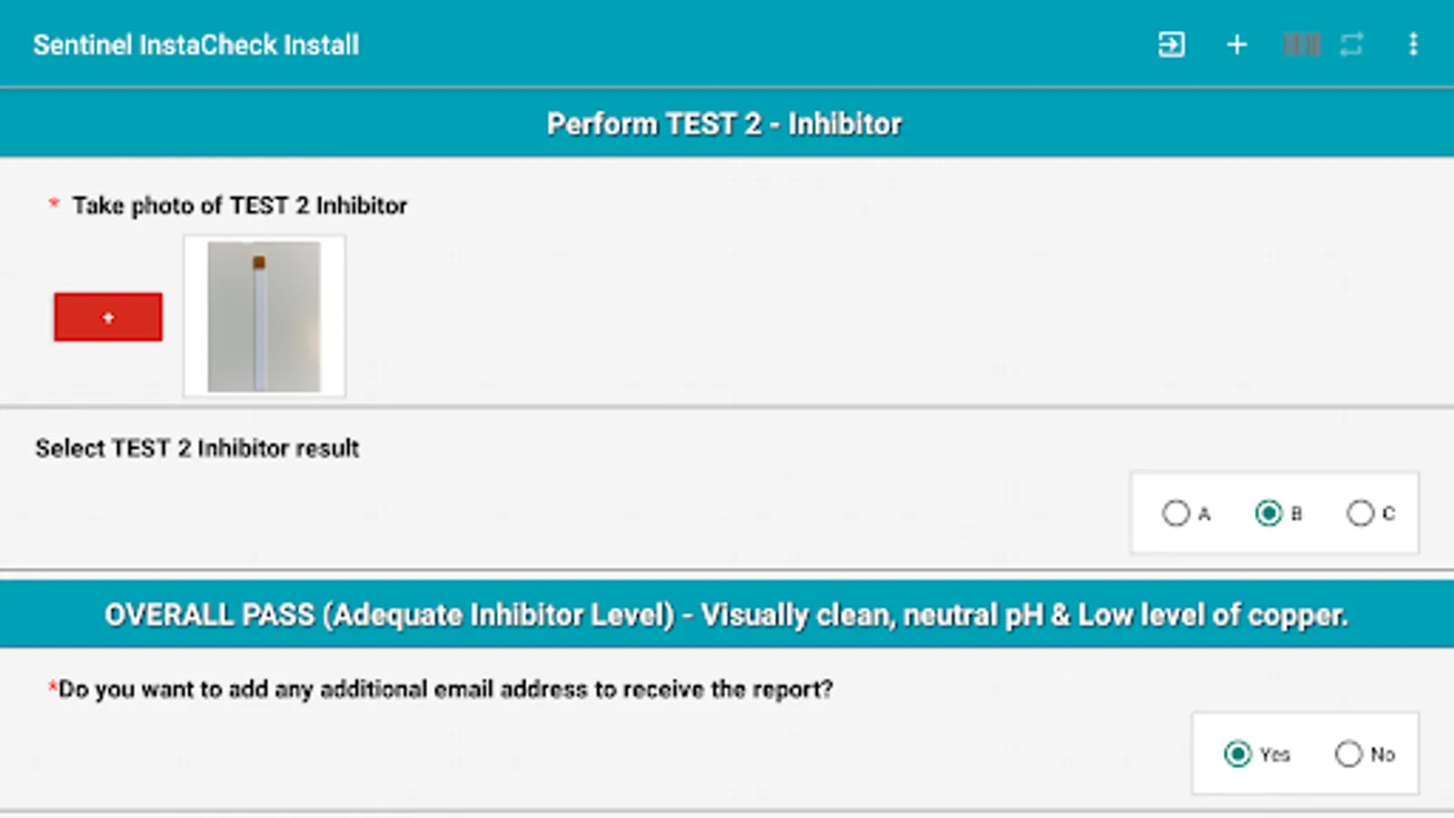 Used in conjunction with the InstaCheck water test kit - sold separately - the app guides users through best practice guidelines based on BS7593 standard; It generates a water quality report with tailored recommendations for ongoing system care, according to water test results.