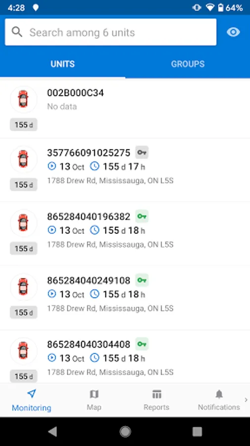 - Units Management. Get all the necessary information on movement and ignition state, data actuality, and unit location in real time.