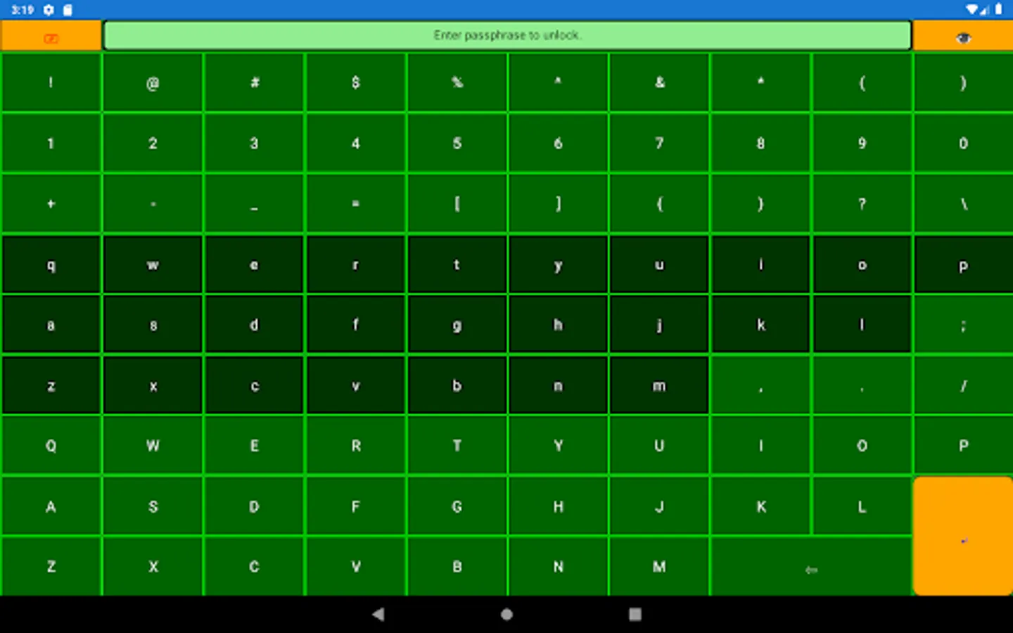-Offers a specifically designed full-screen keyboard for easy and secure entering of long passphrases.